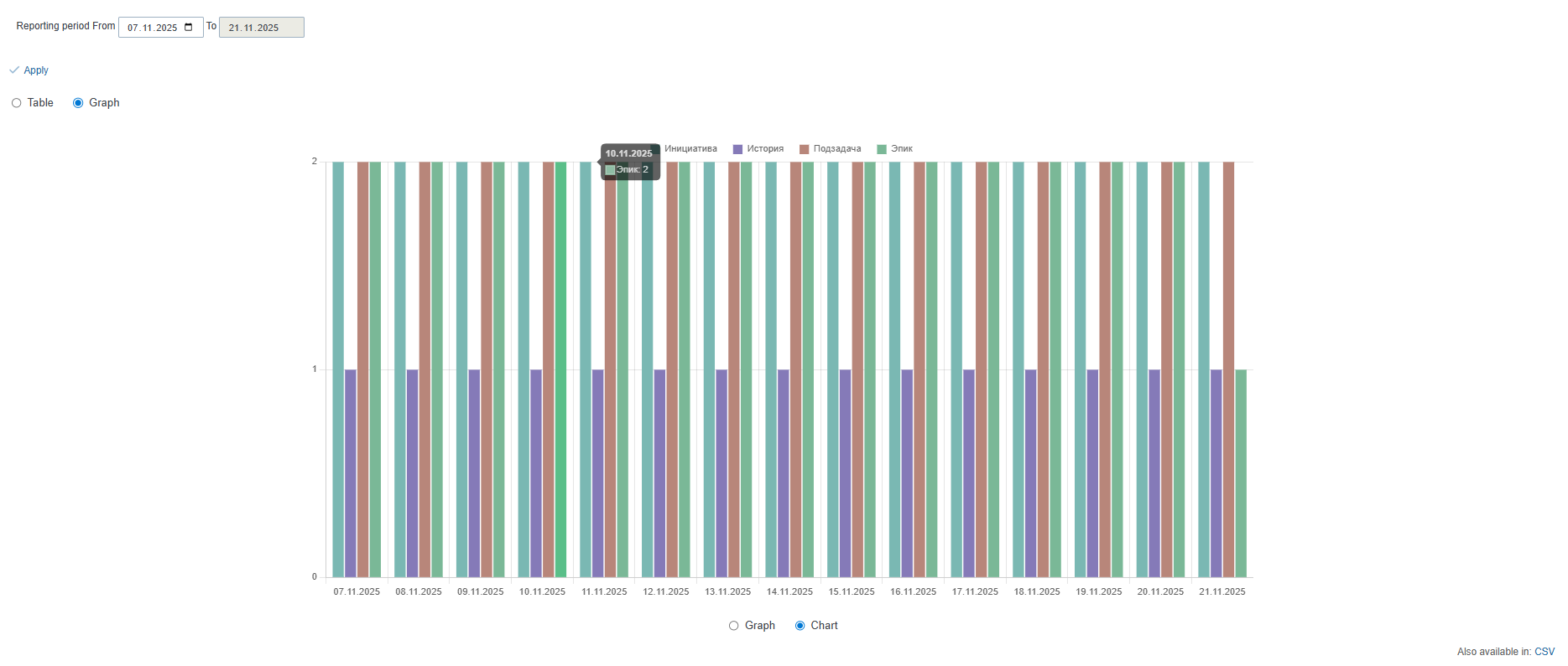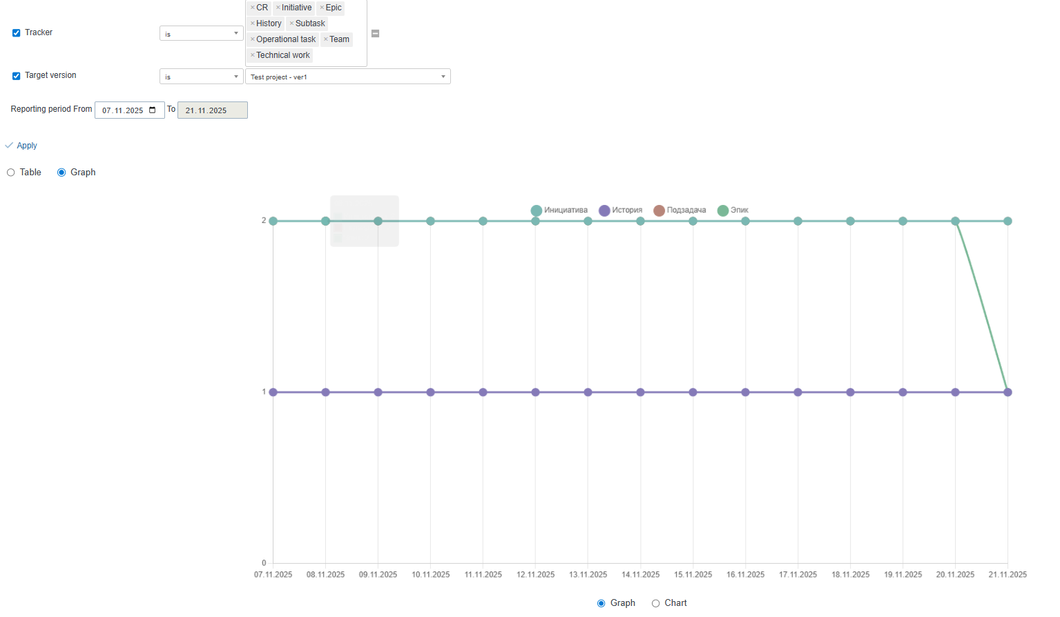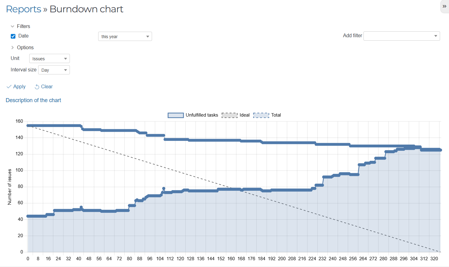 In the chart above, we can see that on day 4, 8 issues were completed, and on day 10, 2 issues were completed.
